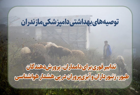 به گزارش روابط عمومی اداره کل دامپزشکی استان مازندران در پی هشدار سازمان هواشناسی جهت بارندگی شدید و کاهش محسوس دما این اداره کل از تمامی دامداران، مرغداران، آبزی پروران و زنبورداران به‌ویژه در مناطق کوهستانی خواست درباره کاهش شدید دما و بارندگی شدید در روزهای آینده، اقدامات فوری را برای جلوگیری از تلفات دام، طیور و خسارت‌های مالی انجام دهند.